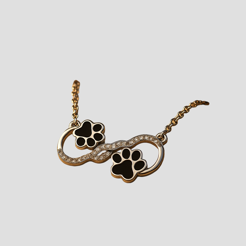 Pakabukas „Infinity Love“ su cirkonais – tai unikalus papuošalas, simbolizuojantis jūsų ypatingą ryšį su keturkoju draugu. Subtilus begalybės simbolis su dviem juodomis pėdomis ir spindinčiais cirkonais atspindi meilę, kuri niekada nesibaigia.