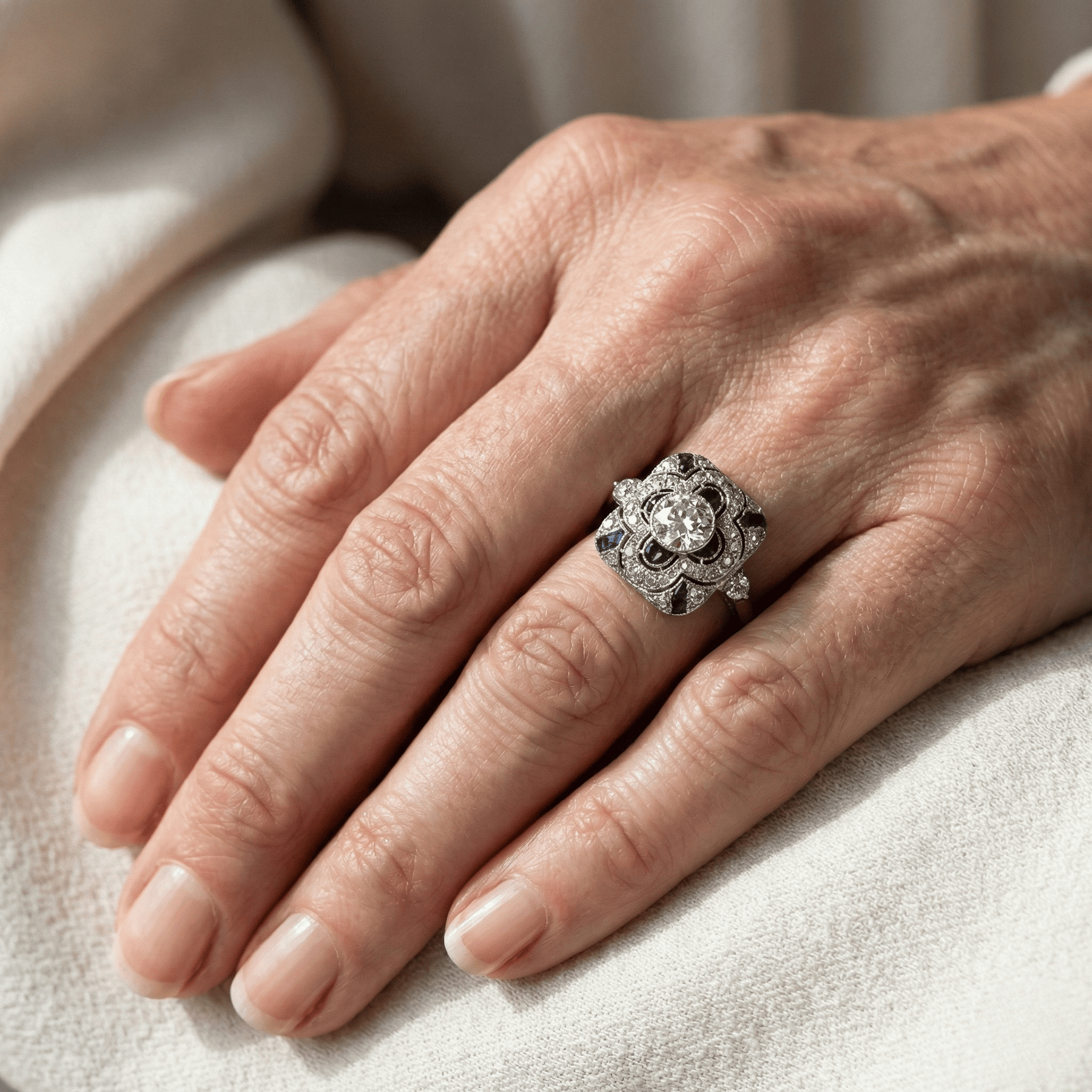Su savo šaltu atspalviu ir klasikinėmis formomis, šis vintage įkvėptas žiedas siūlo blizgantį mėlyną zirconą, įgraviruotą poliruotame sidabro. Turtinga spalva ir laikus pranokstantis dizainas sukuria elegantišką sofistikuotumą, kuris idealiai tinka kasdieniam elegantiškumui ar išskirtiniam vakariniam įvaizdžiui.