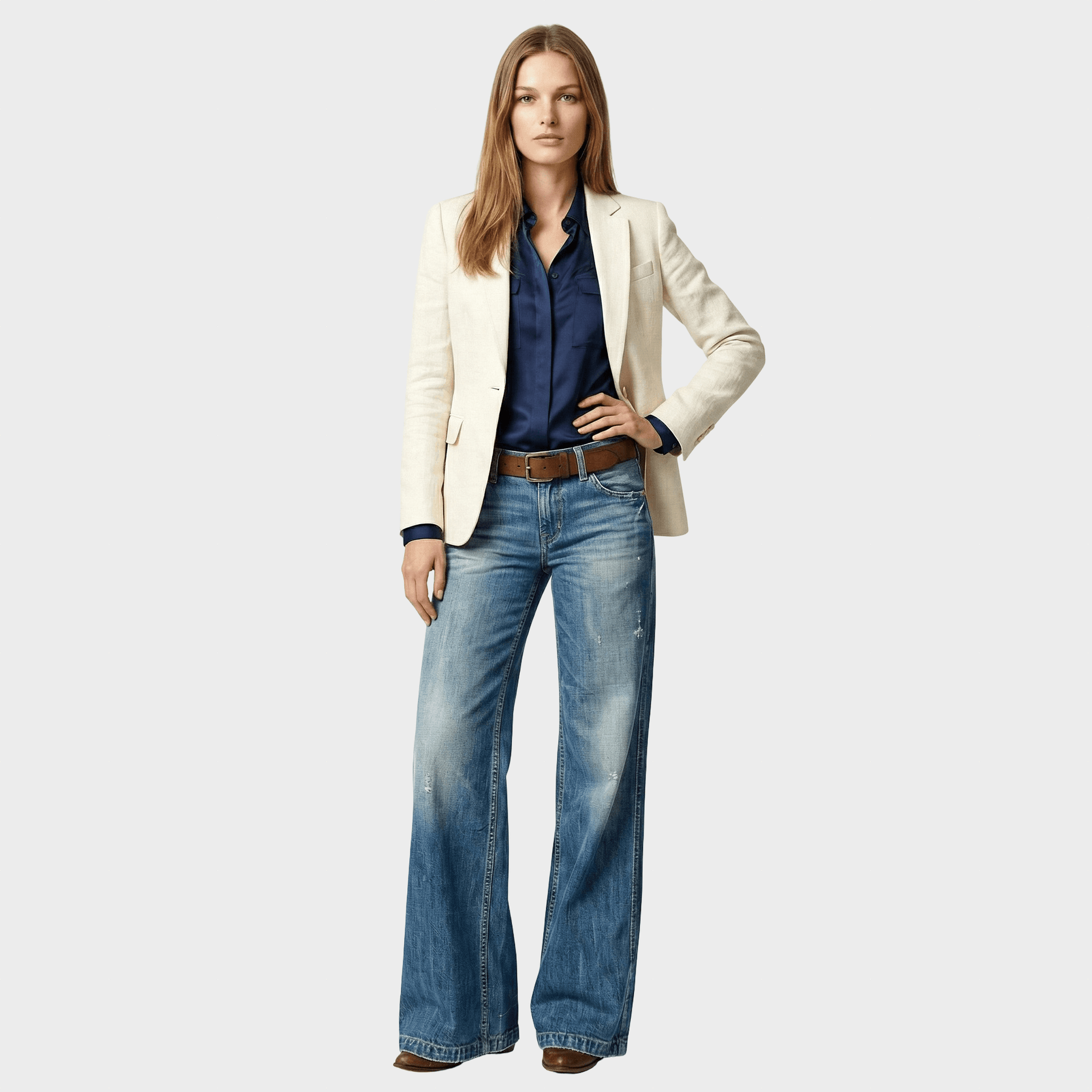 Atraskite tobulą komforto ir stiliaus derinį su plataus kojų džinsais. Šie madingi džinsai turi plačią kirpimą ir modernų dizainą, todėl jie puikiai tinka tiek kasdieniams, tiek elegantiškiems deriniams. Pagaminti iš aukštos kokybės džinsinio audinio, šie džinsai užtikrina ilgalaikį patvarumą ir maksimalų komfortą.