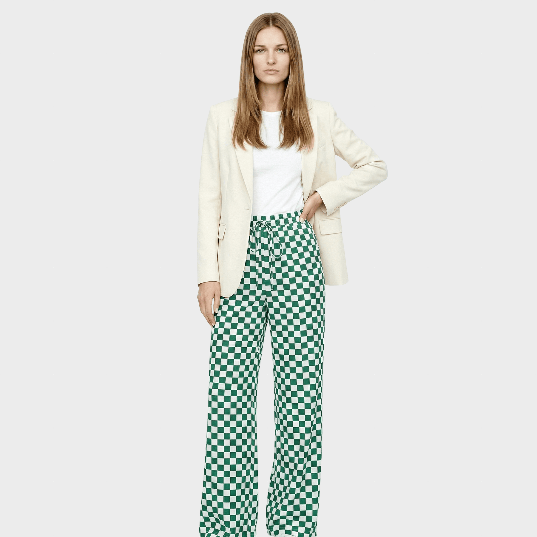 Atsipalaidavusios, modernios ir su šiek tiek retro akcentu, Hilaria kelnės sujungia komfortą ir stilių be pastangų. Jø platinimø juosiø dizaino dizainas su elastine ir keturiomis linijomis daro jas idealia pasirinkimu ramiai dienai stilingai arba neformaliems planams.