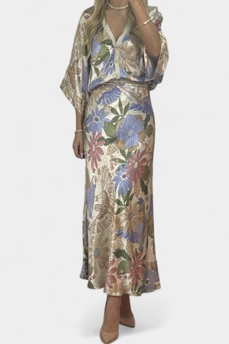 Shae sujungia eleganciją ir romantiką suderintame komplekte, kuris pritraukia visų žvilgsnius. Marškiniai su nuleistais pečiais ir V formos iškirpte išryškina kaklą ir suteikia atsipalaidavusią atmosferą, tuo tarpu žvejys uodegos sijonai pabrėžia figūrą su sklandžiu ir rafinuotu judesiu.