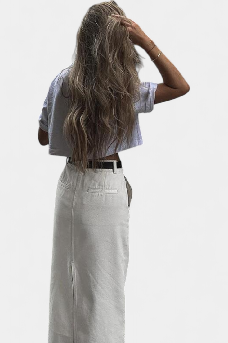 Įkvėptas nerūpestingo žavesio, kuris tvyro Paryžiaus gatvėse, Yenifer sijonas sujungia prigludusį siluetą, kuris pabrėžia figūrą, su priekiu atviru, suteikiančiu elegancijos ir judėjimo laisvės. Jo gamyba iš medvilnės su šiek tiek elastano užtikrina komfortą, neprarandant struktūros, ir yra idealiai tinkama urbanistiniams, elegantiškiems įvaizdžiams.