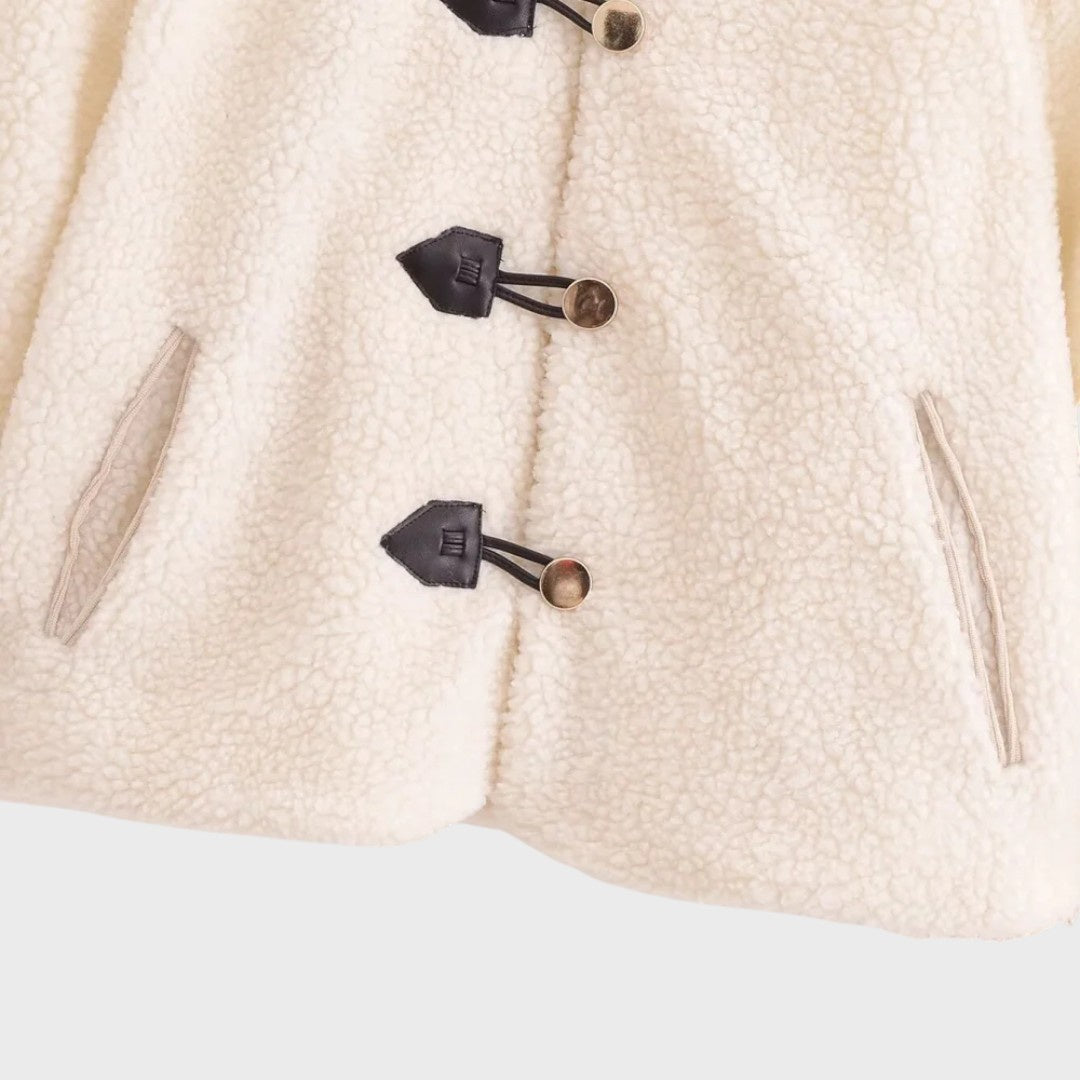 Gūnus | Moteriška trumpa flisinė striukė su sagtelėmis ir kišenėmis su atvartais
