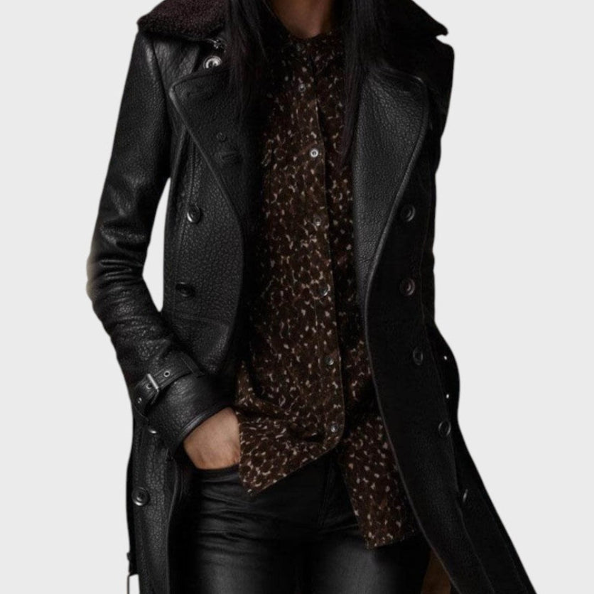Vika | Elegantiškas odinis 3/4 ilgio paltas